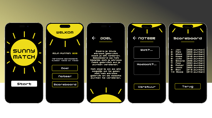 Het eindresultaat is een overzichtelijk en toegankelijk systeem waarin gebruikers op een speelse manier worden gestimuleerd om hun energiegebruik te verplaatsen naar een ander moment. In de app kunnen gebruikers het doel bekijken, hun stroomgebruik noteren en het scoreboard inzien. Wanneer er stroom wordt gebruikt op een gunstig moment, ontvangt de gebruiker hiervoor punten, die zichtbaar zijn op het scoreboard. Dit stimuleert gebruikers om de strijd met elkaar aan te gaan en elkaar te motiveren, waardoor het moment van energieverbruik daadwerkelijk wordt verplaatst.